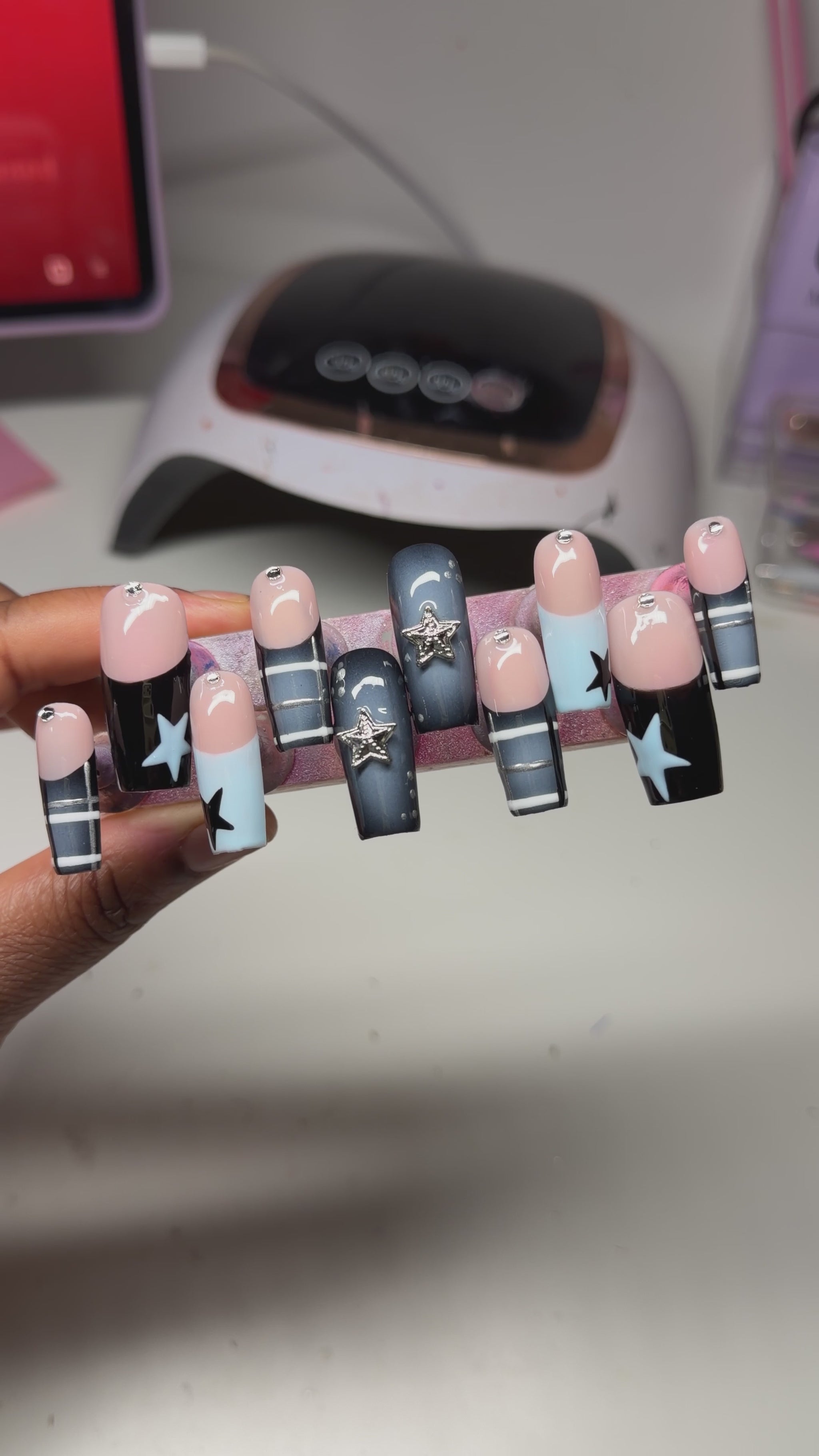 All custom sets are handmade by myself, made with 100% gel products. They are durable & reusable so you can get a salon look in minutes!